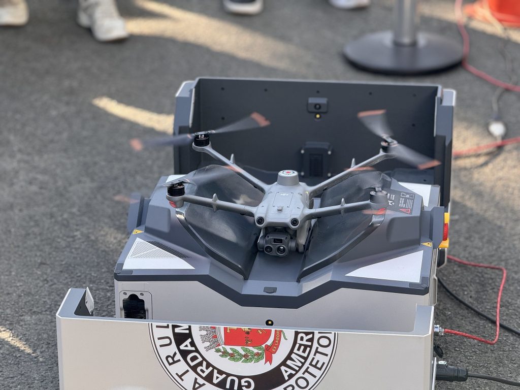 O equipamento, projetado para operações não tripuladas e ininterruptas, opera em conjunto com a DJI Dock 2, uma estação compacta que permite o lançamento, pouso e recarga automática do drone, sem necessidade de intervenção humana frequente. A tecnologia permite que o patrulhamento seja feito de forma automatizada, por meio de uma rota pré-definida, com zoom de longo alcance e detecção de calor, possibilitando inspeções e fiscalizações mesmo em locais de baixa visibilidade. As imagens geradas são monitoradas em tempo real pelo Centro de Segurança e Inteligência (CSI) e pelos patrulheiros nas viaturas e na base móvel.