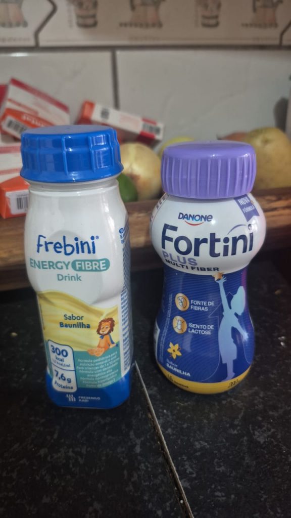 Davi é um guerreiro, nasceu de 29 semanas, passou um ano internado na UTI, teve enterocolite necrosante, que causou a retirada de 22 cm do seu instestino. Sua alimentação é via gastrostomia, e em razão da sua condição, Davi precisa consumir apenas estes suplementos mais calóricos.